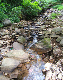 アスレチックの森の下には清水の湧き出る沢が・・・きれいな空気を吸いながらみんなでバーベキュー!