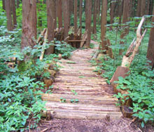 広い敷地に緑いっぱいの森・・・しかしよく見ると森の中へ続く山道が・・・中に入っていくとそこには壮大なアスレチックが・・・。